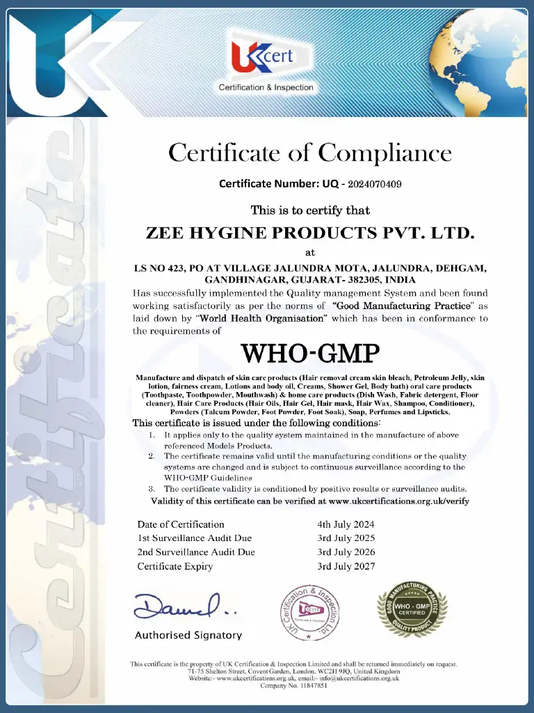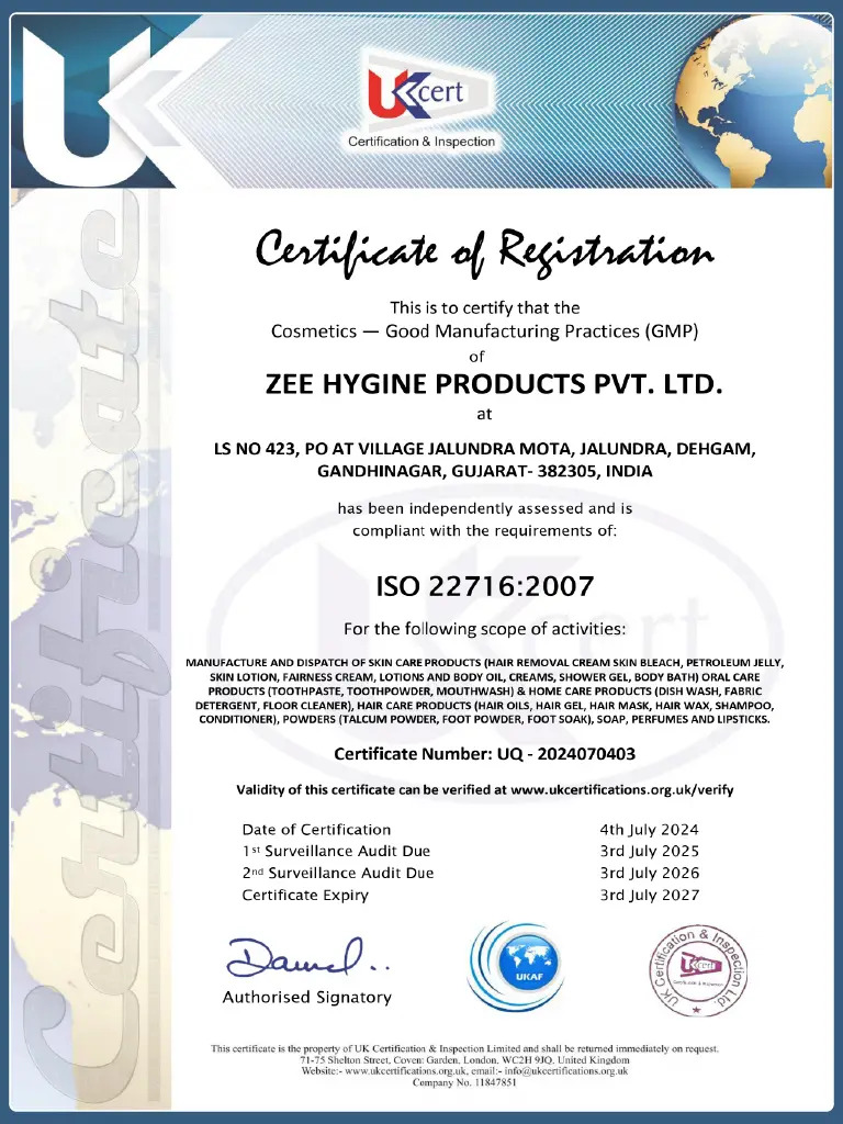 Established in 1994, Zee Hygine Products Pvt. Ltd. is one of India’s most experienced third-party manufacturers in the cosmetics, personal care, and ayurvedic industry. With over 30 years of legacy, we specialize in developing and manufacturing customized solutions across a wide range of categories including Skin Care, Hair Care, Baby Care, Oral Care, Home Care and Herbal Care.